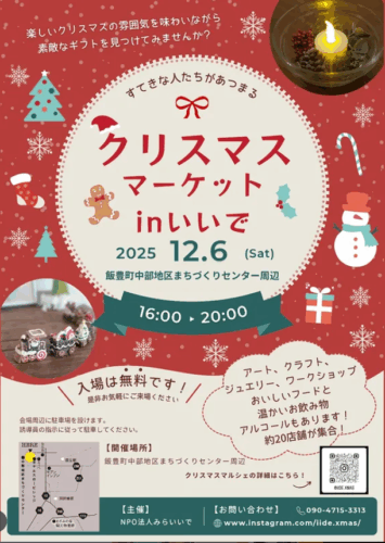 NEWイベント【山形イベント情報12/6】クリスマスマーケットinいいで(飯豊町)2025年12月6日(土)に、「クリスマスマーケットinいいで」が初開催されます! 飯豊町をクリスマスの街にしたい…という夢を形にし