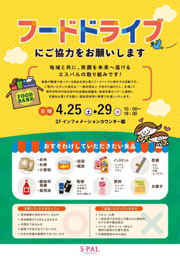 イベント【山形イベント情報4/25~29】もったいないを、誰かの笑顔に。フードドライブ開催こんにちは!ライターのぴんです! 気づいたら、うっかり過ぎそうだった食品の賞味期限。 「今からじゃ食べきれないかも‥‥」と