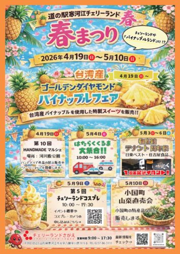 NEWやまぐらパートナー【やまぐらピックアップ】チェリーランドさがえ の『春まつり』開催決定!「やまぐらパートナー」からのおすすめ情報を紹介する「やまぐらピックアップ」! 道の駅寒河江チェリーランドさんからのお知ら