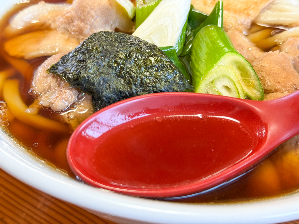 つゆの香りが立って、麺がほどよくほぐれ、全体が一体化した「ほっとする」食べ心地。