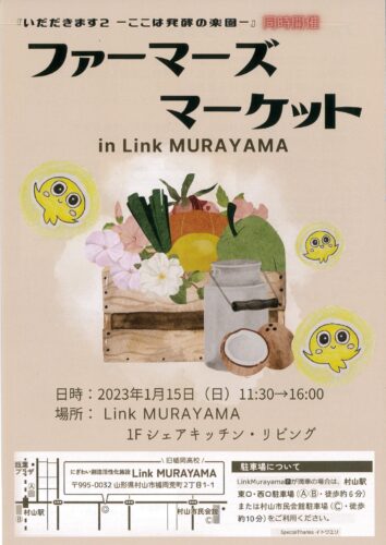 イベント【山形イベント情報1/15】ファーマーズマーケット(村山市楯岡荒) 2023年1月15日村山市楯岡荒のリンクムラヤマさんにて「ファーマーズマーケット」が開催されます。 LinkMURAYAMA公式HP 作った人の顔