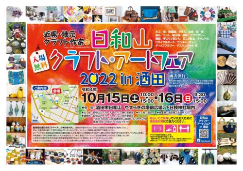 イベント【酒田イベント情報 10/15~16】日和山クラフト・アートフェア2022in酒田が開催されます!!!(酒田市南新町) 2022年10月15日(土)・16日(日)の2日間、日和山公園(酒田市)周辺で、近県・地元の作家さんたちのショップが並ぶイベント「日