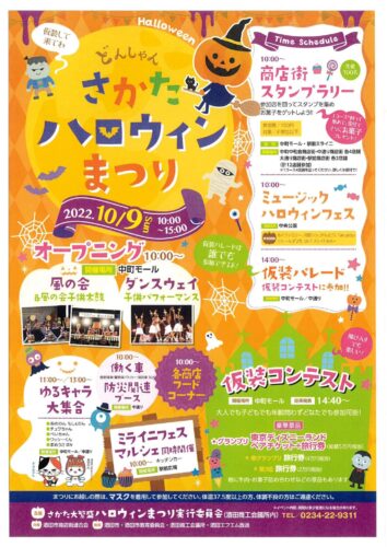 イベント【酒田イベント情報 10/9】さかたハロウィンまつりが開催されます!!!(酒田市中町・駅前商店街) 10月9日(日)、酒田市の中町商店街・駅前広場で「さかたハロウィンまつり」が3年ぶりに開催されるそうです。 豪華賞品が当たる!