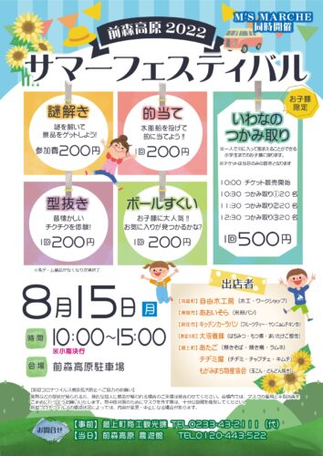 イベント【山形イベント情報8/15】前森高原サマーフェスティバルが開催されるようです! 2022年8月15日、最上町前森高原のわくわくファーム 前森高原で「前森高原サマーフェスティバル」が開催されるようです。 この記事