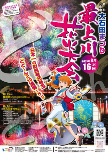 イベント【山形イベント情報8/16】大石田まつり「最上川花火大会」が4年ぶりに通常開催されます! 画像は大石田町公式HPより掲載しています。 令和5年度 大石田まつり「最上川花火大会」 が8月16日(水)に4年ぶりに