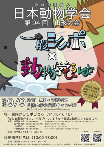 イベント【山形イベント情報9/9】日本動物学会 第94回 山形大会 が開催されます! ポスター画像は公式サイト配布のPDFを画像化して掲載しています。 日本動物学会第94回山形大会 一般公開シンポジウム・動物学