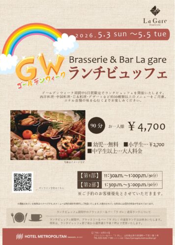 NEWやまぐらパートナー【やまぐらピックアップ】GWランチビュッフェ開催!和洋中の絶品メニューが食べ放題「やまぐらパートナー」からのおすすめ情報を紹介する「やまぐらピックアップ」! ホテルメトロポリタン山形さんからのお知らせ