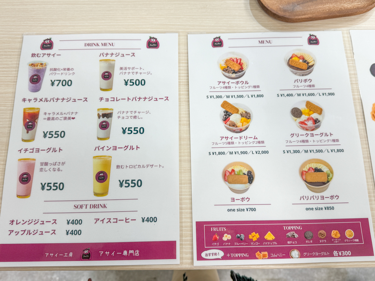 アサイー専門店なのでもちろんアサイーがおすすめなのですが、ドリンクメニューも気になる…!