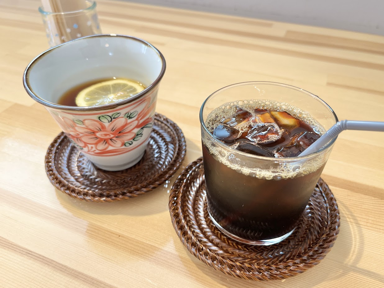 こちらのドリンクは左が自家製スパイスジンジャーティー、右はアイスコーヒーです。