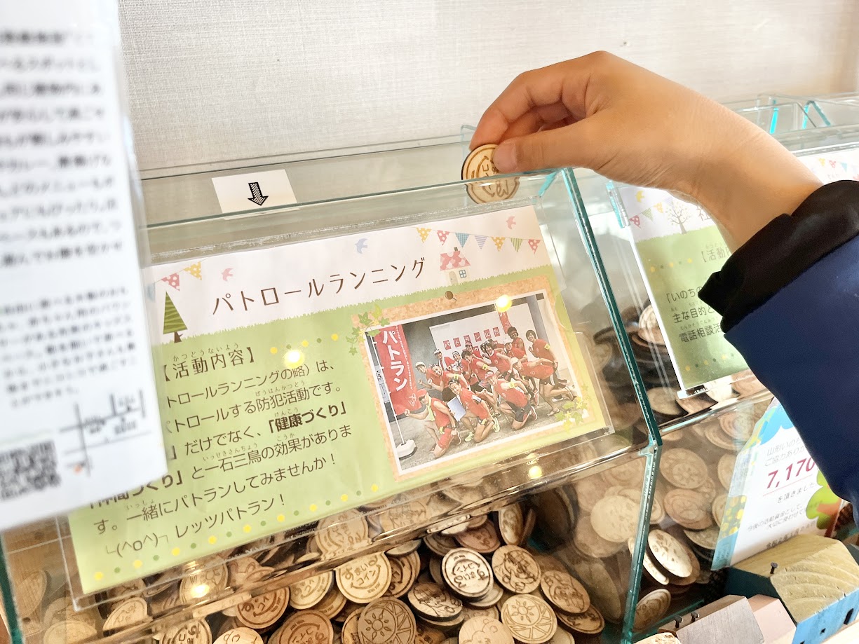 店内に設置してある団体のボックスに入れることで、各団体に10円が寄付されます。