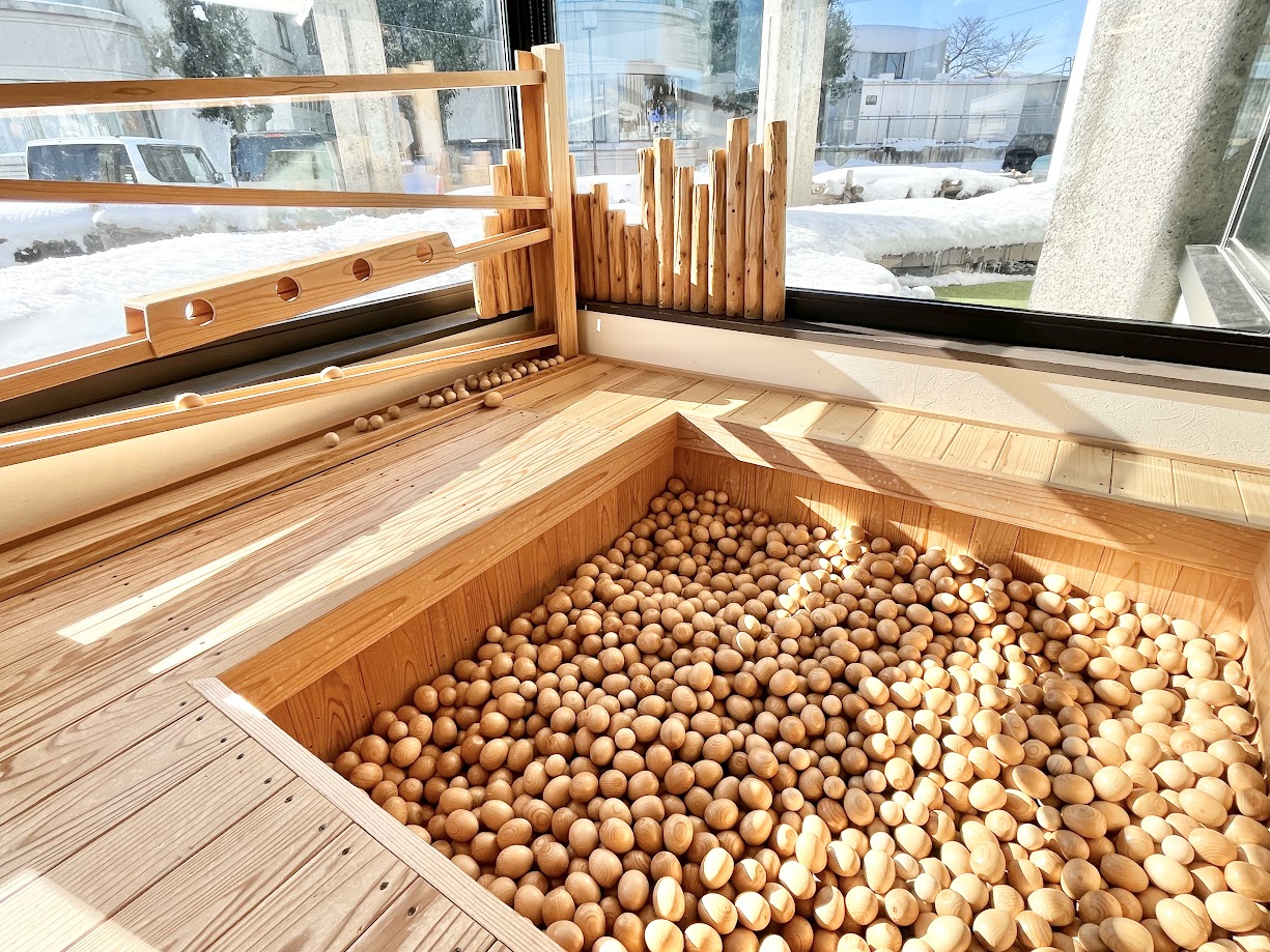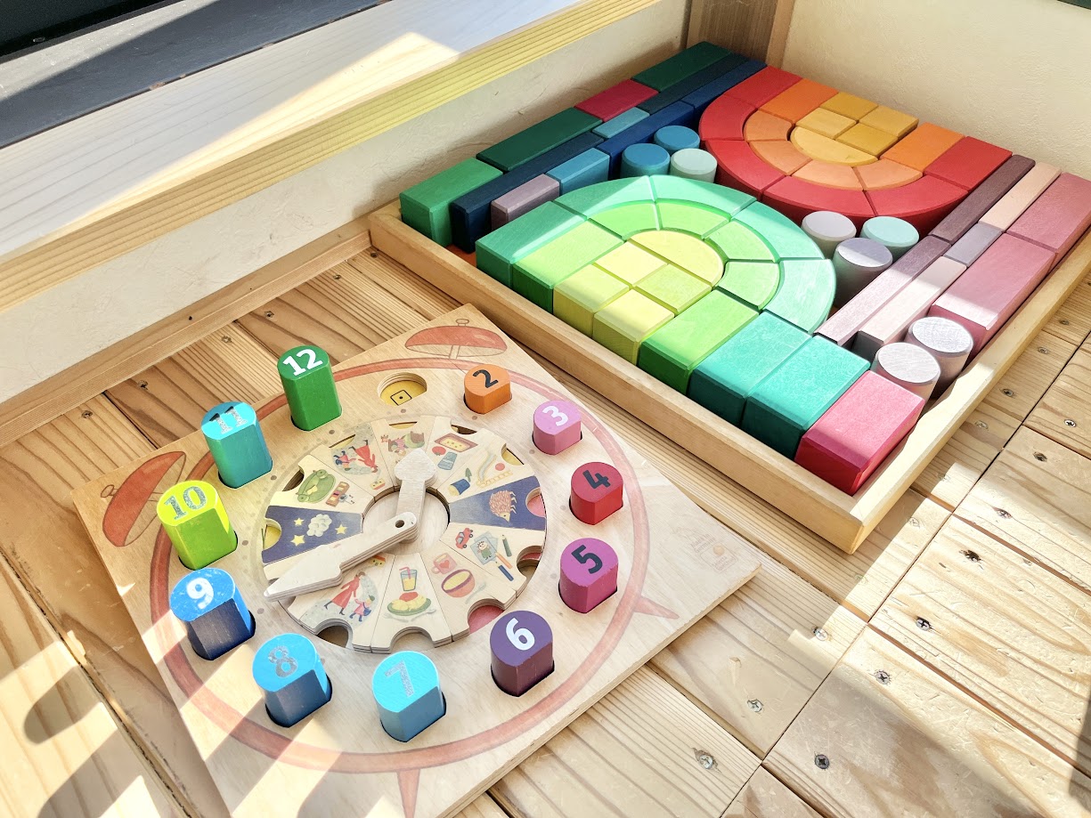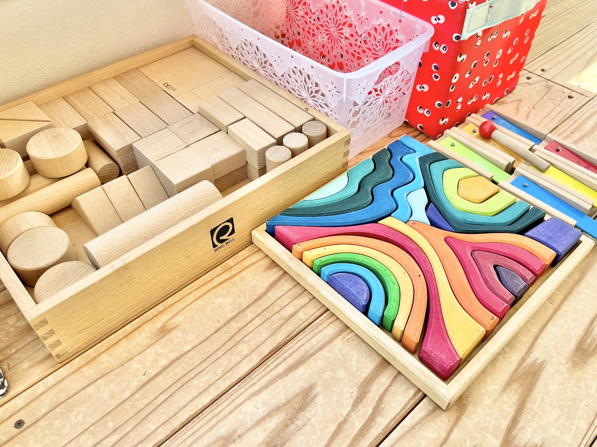 木でできたたまごプールやカラフルな積み木に、子ども達もニコニコです。