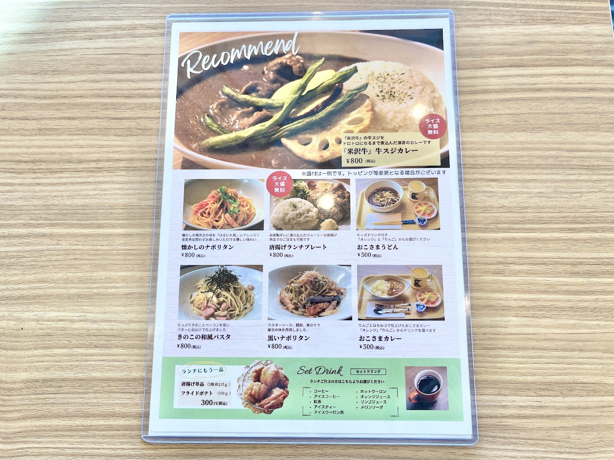 アクティー米沢に入って左側、くてもに入る手前にあるカフェです。