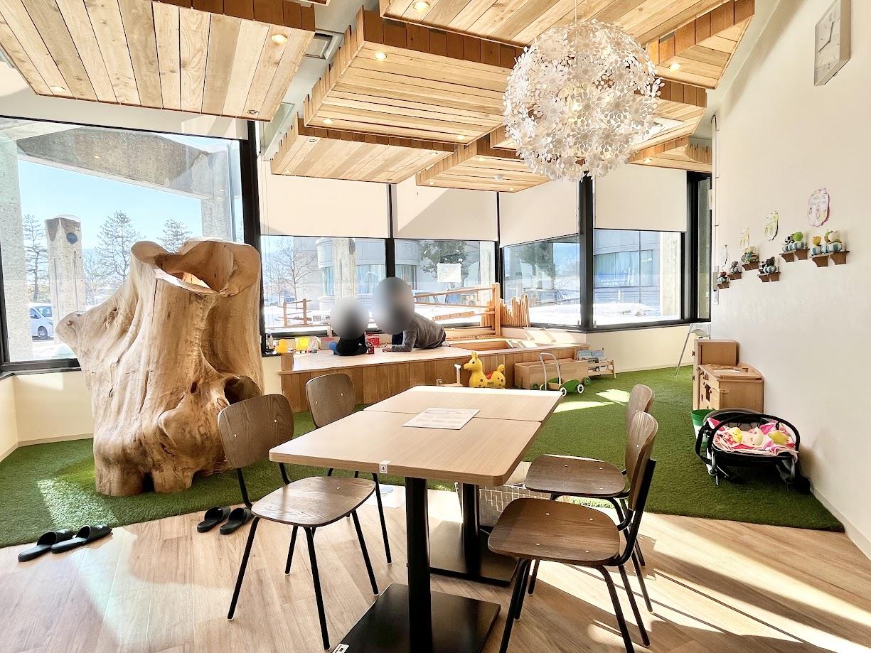 お店は手前にテーブル席、奥にキッズスペースがありました。
