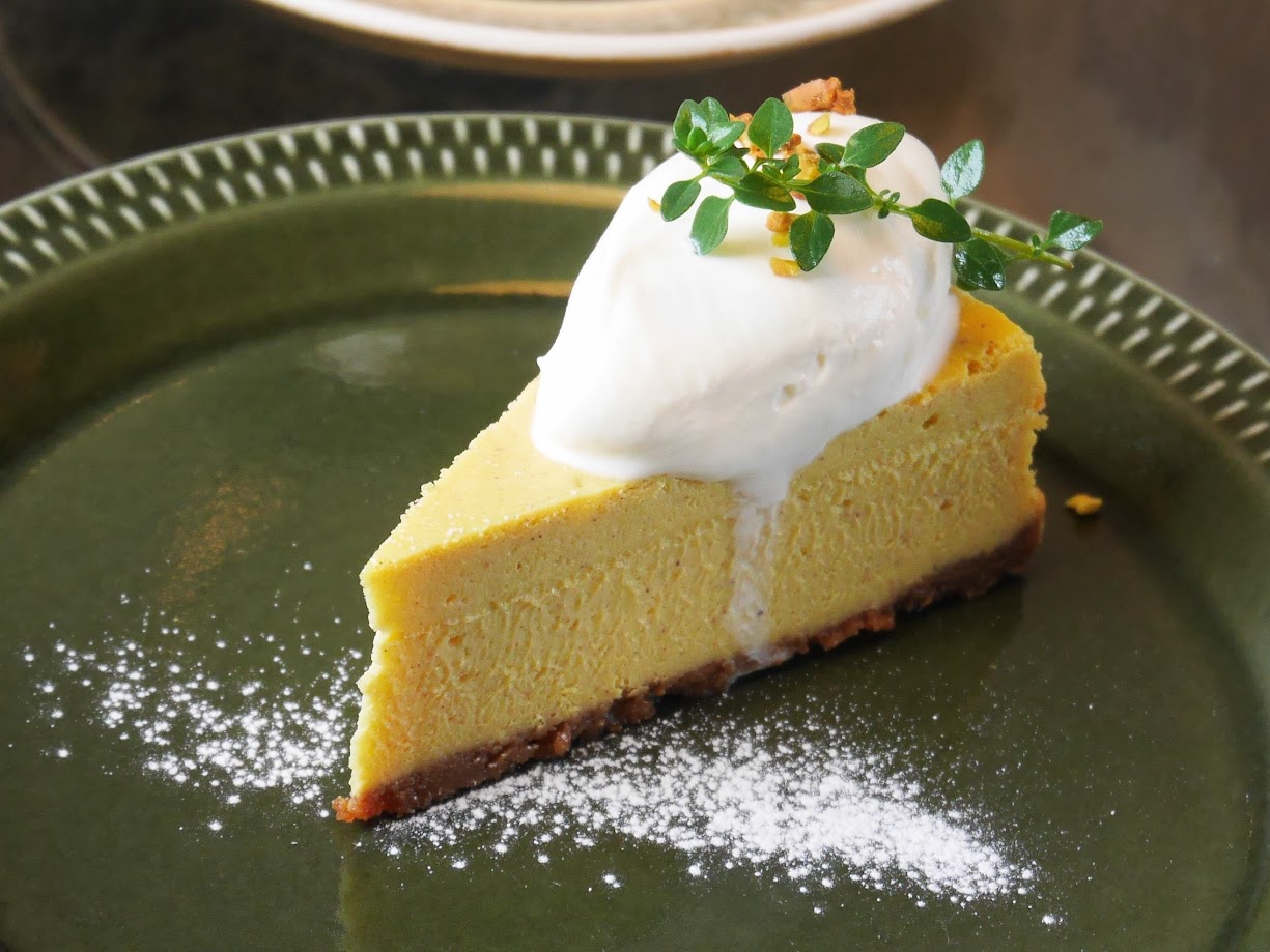 まずは、秋の食材のかぼちゃを使用したチーズケーキ。