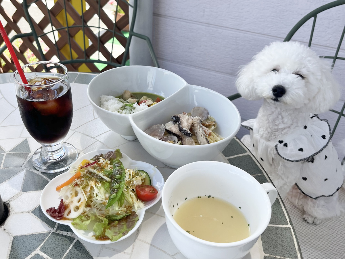 屋外のテラス席では愛犬と一緒のランチも楽しめました。
