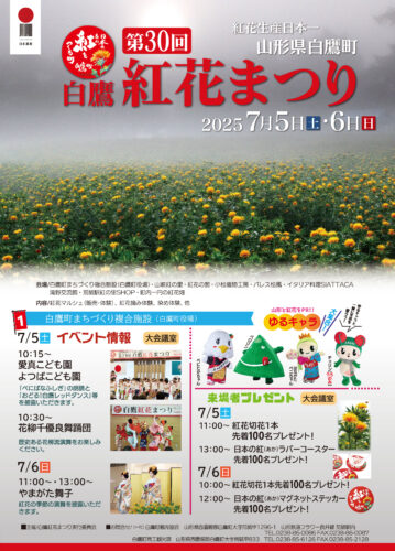 イベント【山形イベント情報7/5.6】第30回 白鷹紅花まつり(白鷹町) 2025年7月5日(土)と6日(日)に「第30回 白鷹紅花まつり」が開催されます。 第30回 白鷹紅花まつり 第30回 白鷹紅花まつりは7/5(