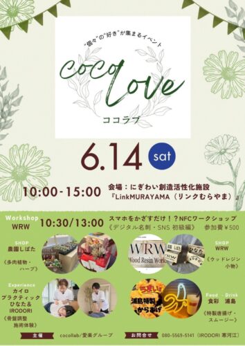 イベント【山形イベント情報6/14】cocoLOVE(村山市) 2025年6月14日(土)に村山市で「cocoLOVE」が開催されます。 cocoLOVE カイロプラティック・美容カイロ・エステでお馴染み愛楽グル