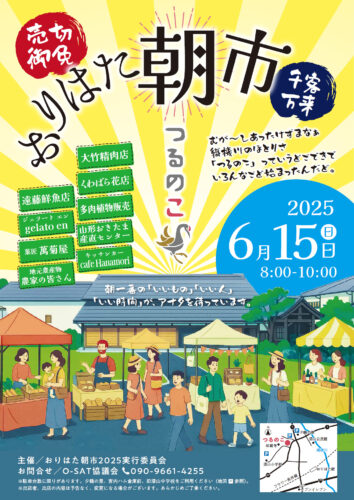 イベント【山形イベント情報6/15】おりはた朝市2025(南陽市) 2025年6月15日(日)に、南陽市で「おりはた朝市2025」が開催されます。 おりはた朝市2025 南陽市漆山地区にて、地域に親しまれて