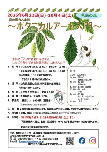 イベント【山形イベント情報6/22,10/4】ボタニカルアート入門(山辺町) 2025年6月7日(土)に、山形県県民の森で「ボタニカルアート入門」が開催されます。 ボタニカルアート入門 植物の肖像画ともい