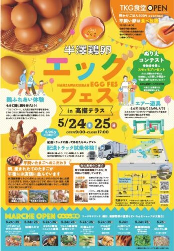 イベント【山形イベント情報5/24~25】半澤鶏卵エッグフェス(天童市) 2025年5月24日(土)25日(日)に、天童市で「半澤鶏卵エッグフェス」が開催されます。 半澤鶏卵エッグフェス 第一回半澤鶏卵エ