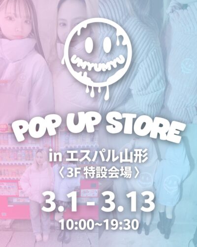 イベント【山形イベント情報3/1~3/13】「umyumyu」のPOP UP STOREが期間限定開催! S-PALにて、「umyumyu」のPOP UP STOREが期間限定でオープンします! 「umyumyu」のPOP UP STOREが期間限定開催 エスパル山形店公式HP 「umy