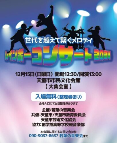 イベント【山形イベント情報12/15】レインボーコンサート2024(天童市) 2024年12月15日(日)に、天童市で「レインボーコンサート2024」が開催されます! レインボーコンサート2024 天童市芸術文化協会に所