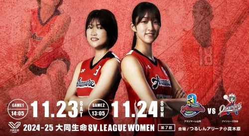 イベント【庄内注目イベント11/23・24】今季初!アランマーレ山形鶴岡大会開催|ホームゲームで白星を! 2024年11月23日(土・祝)と11月24日(日)につるしんアリーナ小真木原(小真木原総合体育館)で、バレーボールチーム「アランマ