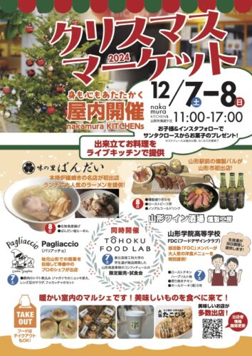 イベント【山形イベント情報12/7.8】クリスマスマーケット2024(山形市) 2024年12月7日(土)、8日(日)に、山形市で「クリスマスマーケット2024」が開催されます! クリスマスマーケット2024 今年も開催