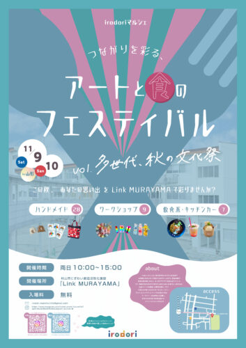 イベント【山形イベント情報11/9~10】つながりを彩る、アートと食のフェスティバル vol.多世代、秋の文化祭(村山市) 2024年11月9日(土)・10日(日)に、村山市で「つながりを彩る、アートと食のフェスティバル vol.多世代、秋の文化祭」が開催さ