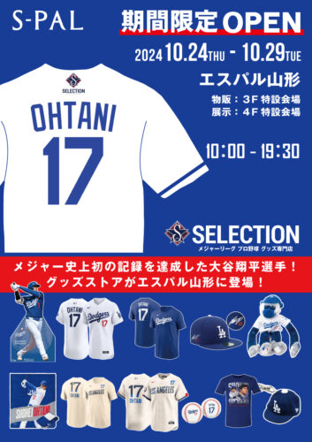 イベント【山形イベント情報】大谷翔平選手グッズがエスパル山形に登場!期間限定ショップオープン どーも! 野球ファン必見! メジャーリーグで活躍する大谷翔平選手のグッズを中心とした「SELECTION」期間限定ショップが、エスパ
