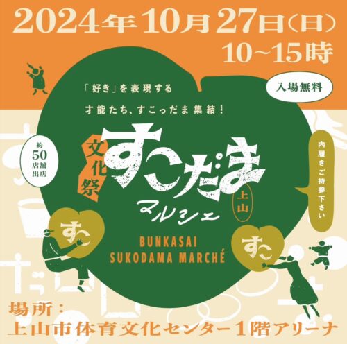イベント【山形イベント情報10/27】文化祭すこだまマルシェ(上山市) 2024年10月27日(日)に、上山市で「文化祭すこだまマルシェ」が開催されます! 文化祭すこだまマルシェ 【文化祭すこだまマルシ