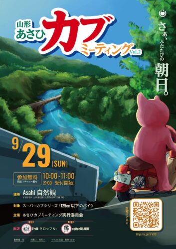 イベント【山形イベント情報9/29】「山形あさひカブミーティングVol.2」が開催されます! 「山形あさひカブミーティングVol.2」が開催されます! 場所:Asahi自然観(朝日町) 対象:スーパーカブシリーズ/125㏄以下のバ