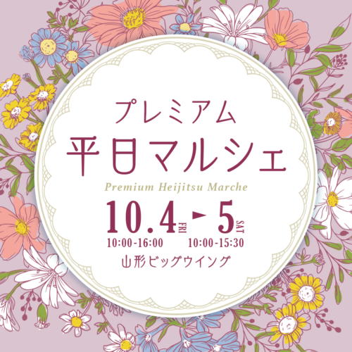 イベント【山形イベント情報10/4.5】プレミアム平日マルシェ(山形市)2024年10月4日・5日に、山形ビッグウイングで「プレミアム平日マルシェ」が開催されます! プレミアム平日マルシェ ***** Ἲ