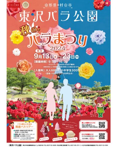 イベント【山形イベント情報9/13~9/23】秋のバラまつり2024(村山市) 2024年9月13日~23日に、東沢バラ公園で「秋のバラまつり2024」が開催されます! 秋のバラまつり2024 期 間:9月13日(金曜)から