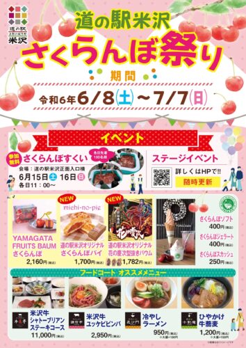 イベント【山形イベント情報6/8~7/7】道の駅米沢さくらんぼ祭り(米沢市) 2024年6月8日~7月7日に、道の駅米沢で「さくらんぼ祭り」が開催されます! 道の駅米沢「さくらんぼ祭り」 期間中は「さくら