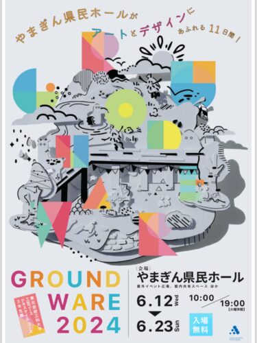 イベント【山形イベント情報6/12〜23】GROUND WARE 2024 2024年6月12日〜23日、やまぎん県民ホールにて「GROUND WARE 2024」が開催されます。 GROUND WARE 2024 10時00分 ~ 19時00分 火曜日休館日