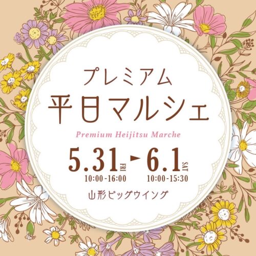 イベント【山形イベント情報5/31〜6/1】プレミアム平日マルシェが開催されます! 2024年5月31日〜6月1日、山形ビッグウイングにて「プレミアム平日マルシェ」が開催されます。 プレミアム平日マルシェ 各日86