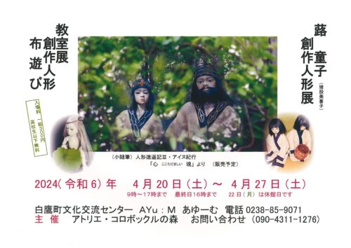 イベント【山形イベント情報4/20〜27】蕗童子 創作人形展 & 教室展(創作人形・布遊び)が開催 2024年4月20日〜27日まで白鷹町文化交流センターAYu:M(あゆーむ) ギャラリーにて「蕗童子 創作人形展 & 教室展(創作人形・布