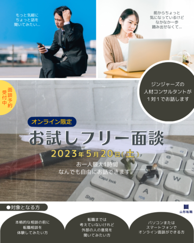 特集・寄稿記事【やまぐらピックアップ】転職者必見! オンライン限定お試しフリー相談会 やまがたぐらしのパートナーからのお知らせを紹介する「やまぐらピックアップ」のコーナーです。 1.オンライン限定お試し