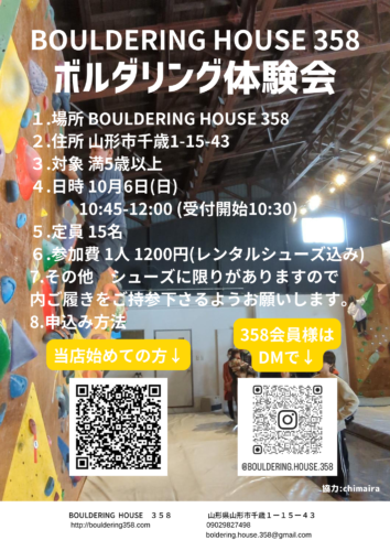山形の話題【やまぐらピックアップ】人気高まるボルダリング!体験会を開催します 「やまぐらパートナー」からのおすすめ情報を紹介する「やまぐらピックアップ」! BOULDERING HOUSE 358さんからのお知らせです! ぜ