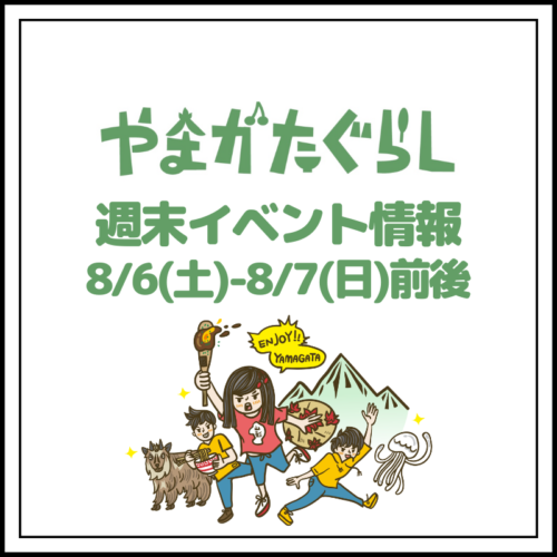 イベント【山形週末イベント情報】8/6(土)、8/7(日)前後のマルシェやイベント等 どーも! やまがたぐらしのイベントおまとめ担当のやまがタロウです! 「イベント情報をまとめてくれ!」というお声を多数い
