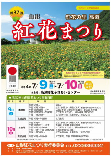 山形の話題【山形イベント情報(7/9,10)】山形紅花まつり(山形市下東山)が開催されるようです! 山形県花・山形市花でもある美しさとかわいらしさを兼ね備えた黄色い花「紅花」。 ぜひ、イベント会場で咲き誇る様子をご覧く