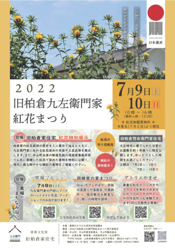 山形の話題【山形イベント情報(7/9,10)】2022旧柏倉久左衛門家紅花まつり(中山町)が開催されるようです! 山形県花でもある、美しくも可愛らしい紅花。 旧柏倉家住宅では、紅花の展示を行います。 2022旧柏倉久左衛門家紅花まつりと