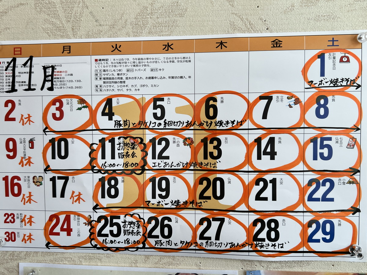 11月の3週目の「エビあんかけ焼きそば」が気になっています・・・。
