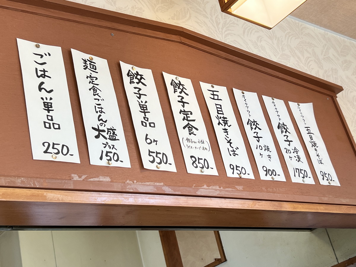 大人気の五目焼きそばと餃子がレギュラーメニューです。