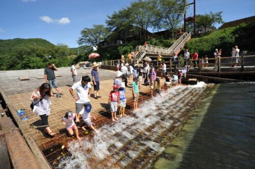 まつりは公園を中心に開催され、ヤナ場にかかった旬の鮎を堪能できます!