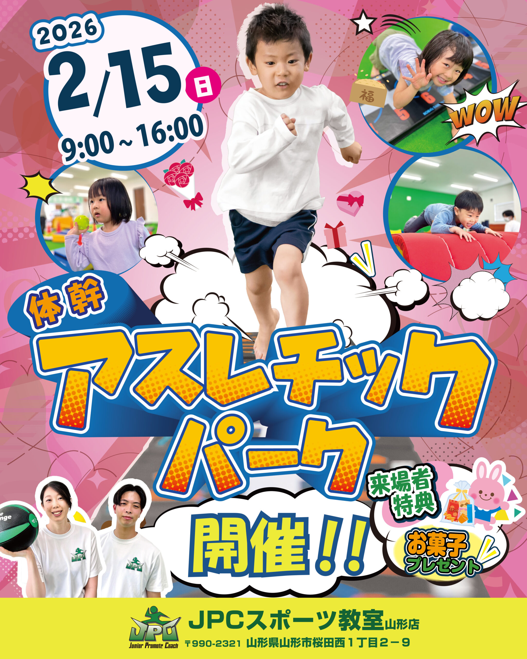 2月15日(日)JPCスポーツ教室山形店で体幹アスレチックパークを開催します。