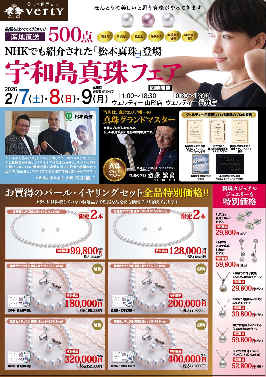 真珠の一大産地・愛媛県宇和島から、産地直送の高品質な真珠が届く特別な3日間。