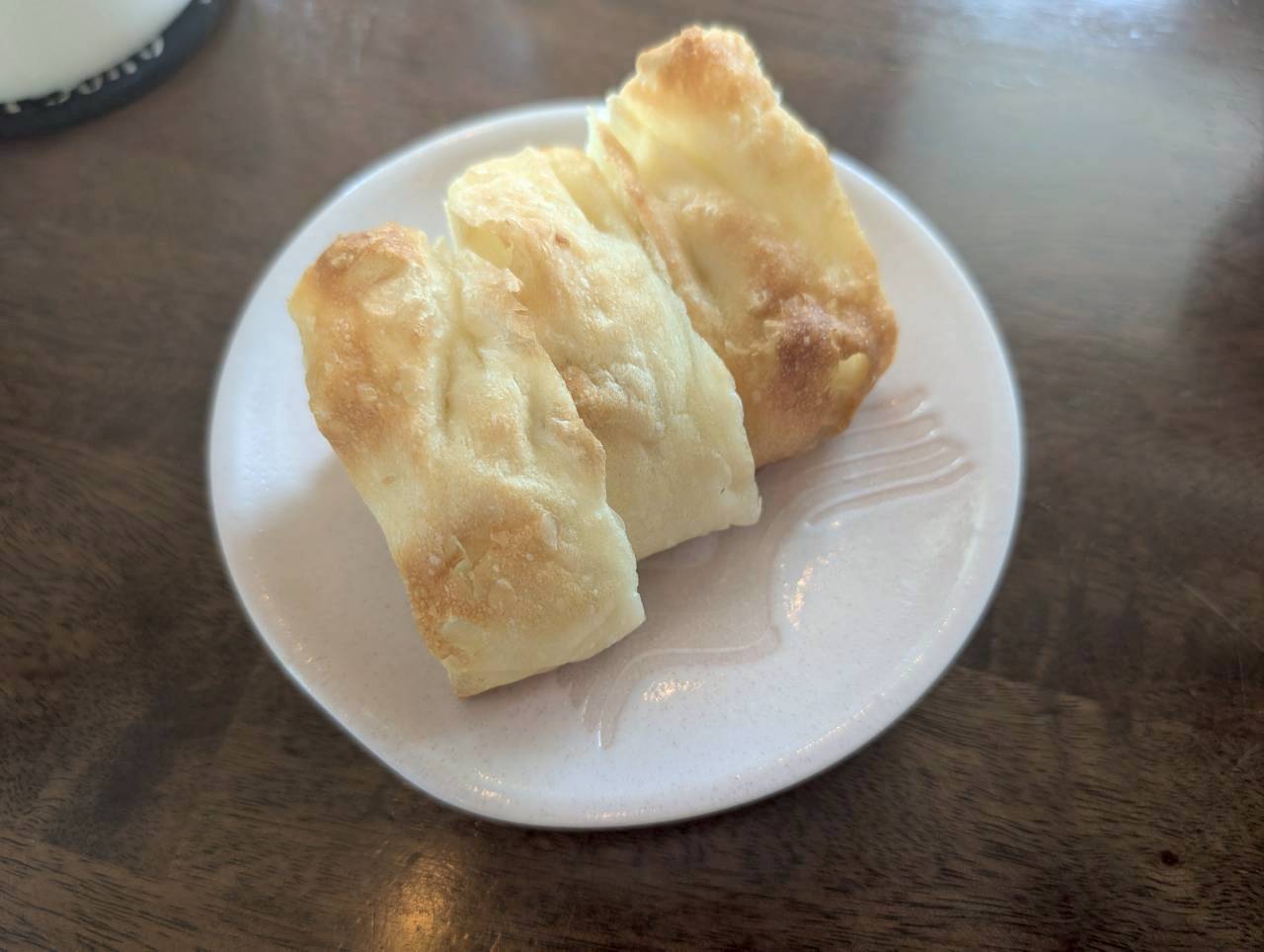 皿に残ったソースをつけて食べますので1切れあれば十分です。