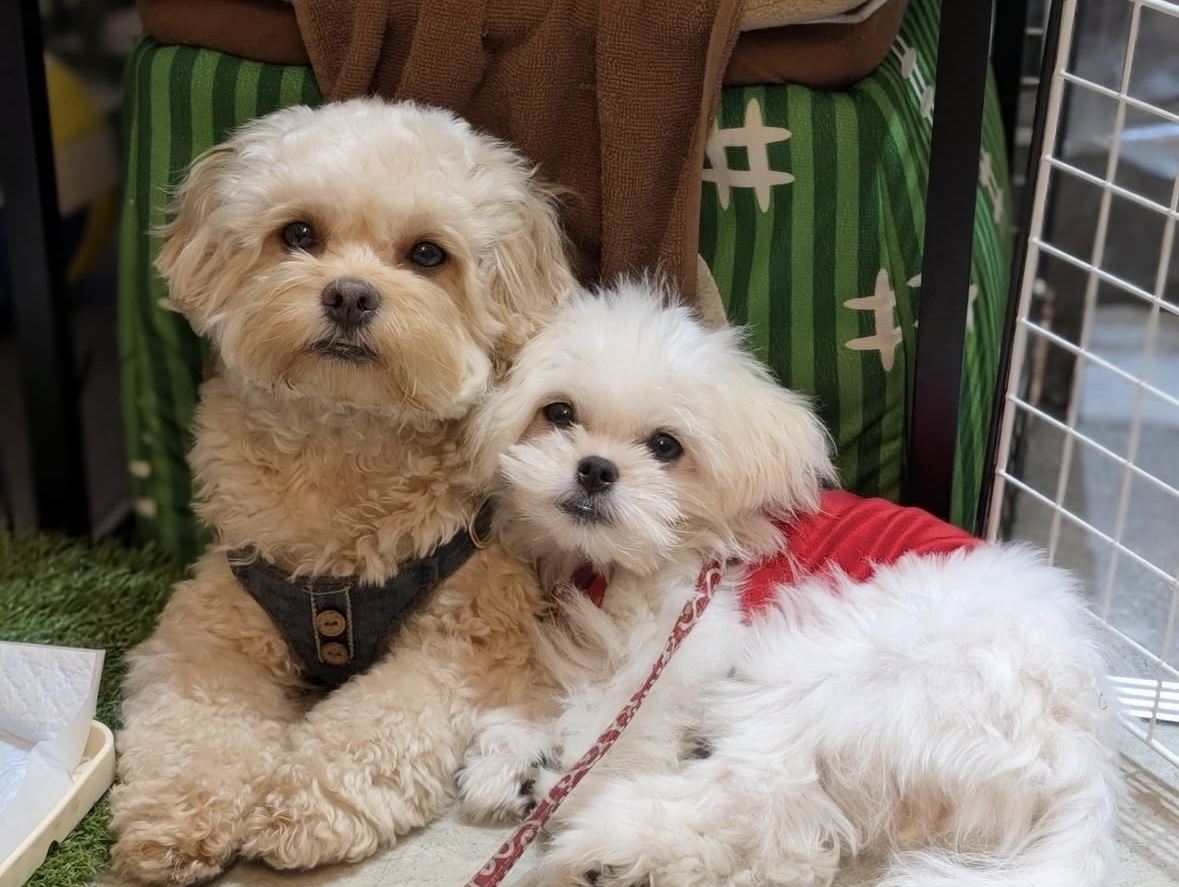 そして、可愛い看板犬のたらこちゃん(左)とぴりかちゃん(右)です🐶